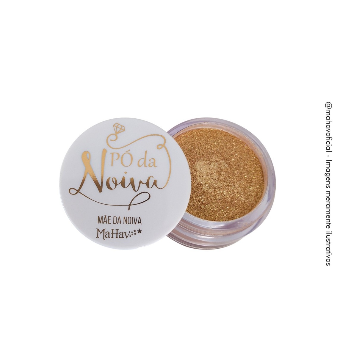 Experimente usar o PÓ DA NOIVA ILUMINADOR MAHAV também como sombra ou em efeitos de iluminação no colo (acredite: é perfeito!), ou ainda como acabamento nos lábios sobre o batom. Aplique uma camada da BRUMA FIXADORA MAHAV antes e depois da aplicação do PÓ DA NOIVA MAHAV para potencializar ainda mais o brilho e aumentar a durabilidade da make.