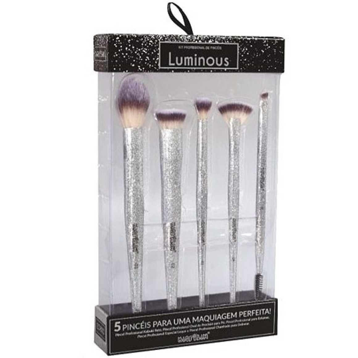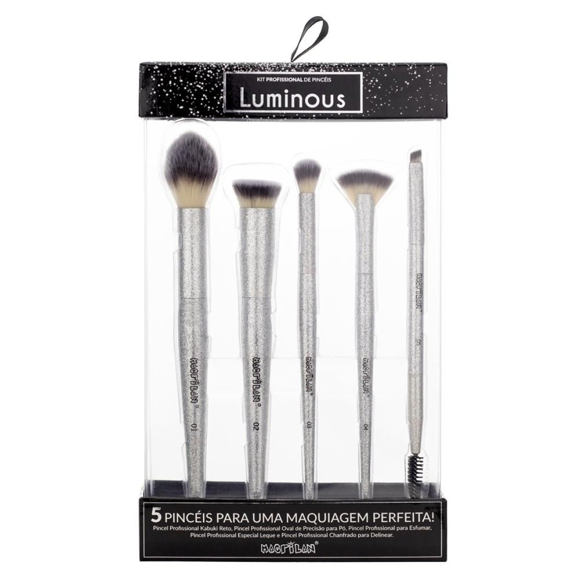 O Kit de Pincéis Luminous da Macrilan acompanha 5 pincéis para elaborar maquiagens completas, tanto com produtos líquidos ou cremosos, como produtos em pós. Possuem luxuosos cabos na cor prata e com muito brilho e cerdas super macias em formatos especiais para um acabamento suave e impecável.