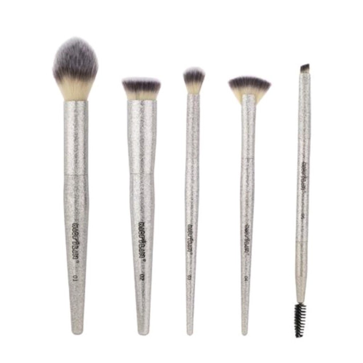 O Kit contém 5 pincéis 1 - Kabuki Reto: pincel ideal para aplicação da base; 1 - Oval de Precisão: ideal para aplicação do pó; 1 - Pincel para Esfumar: ideal para aplicação de sombras; 1 - Pincel Leque: ideal para aplicação de iluminador; 1 - Pincel Chanfrado: ideal para sobrancelhas e delineados.
