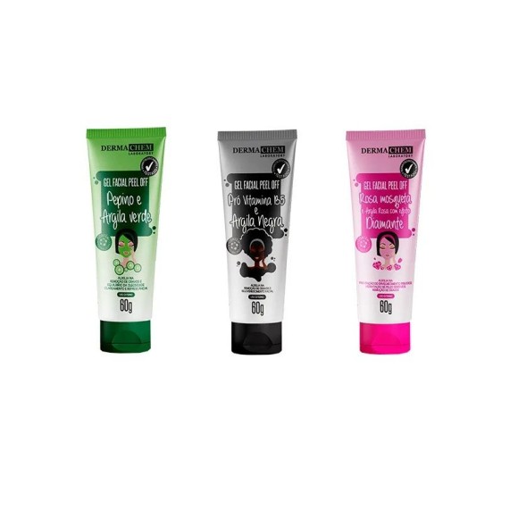 Kit 4 Gel Facial Peel Off Argila Dermachem 60g cada
