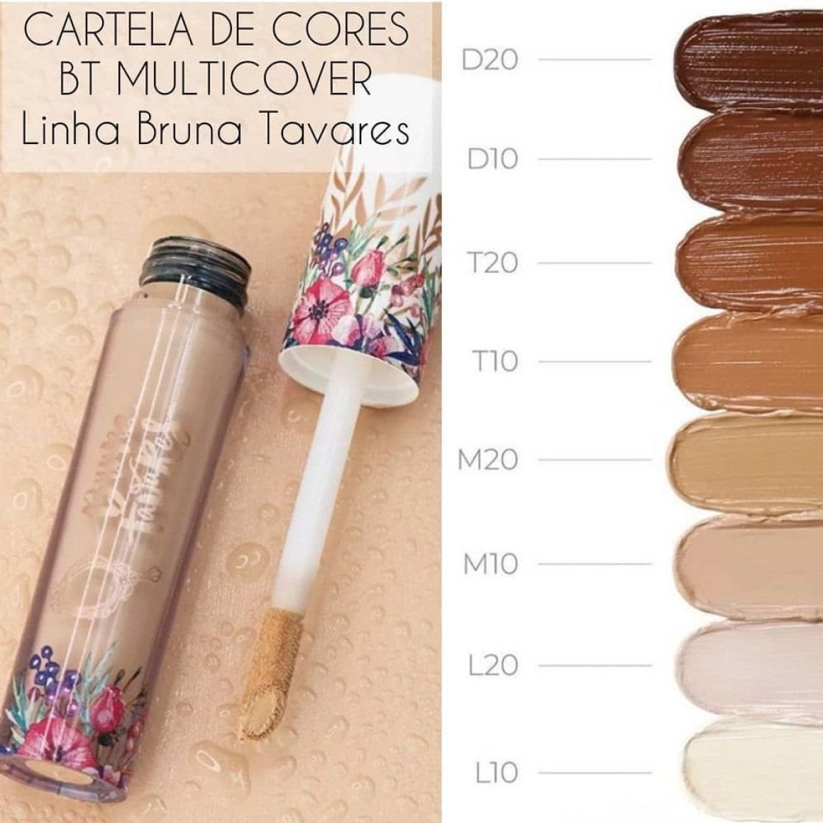 O Corretivo BT Multicover possui cobertura média a alta, disfarçando imperfeições. Enriquecido com Ácido Hialurônico, hidrata a região abaixo dos olhos, proporcionando uma cobertura mais uniforme e Ecoffea, extrato de café verde, um ativo rejuvenescedor, que estimula a energia celular, mantendo a pele saudável. Possui longa duração.