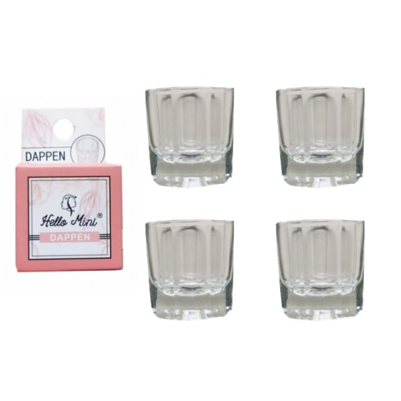 Kit 4 Dappen de Vidro Mistura pó líquido Monomer Hello Mini