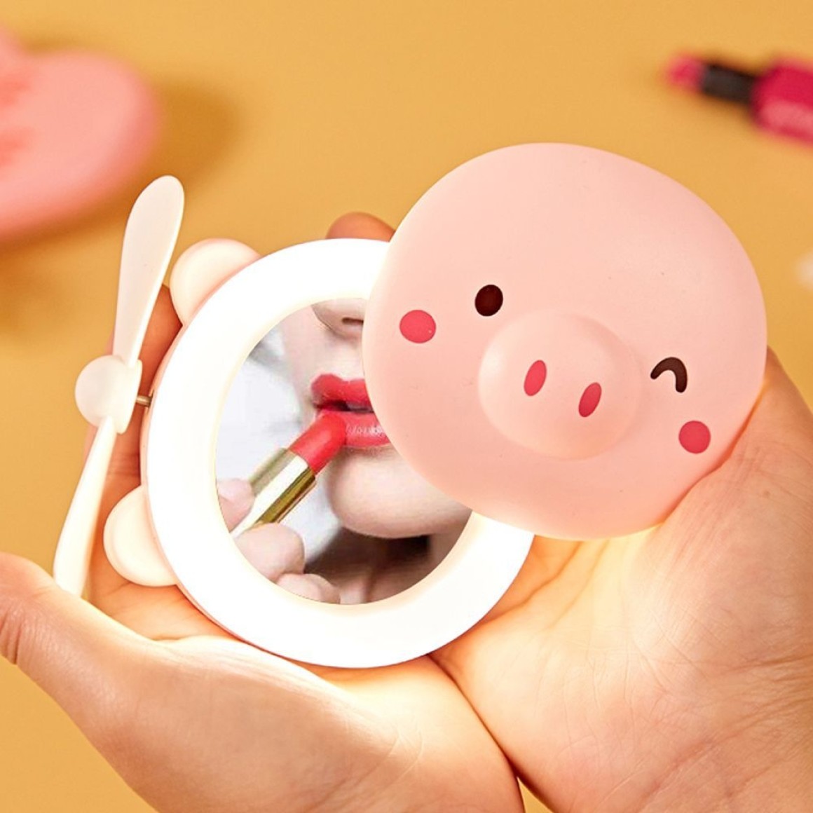 Com o mini espelho você terá tudo o que precisa para se maquiar em um só lugar, conta com luz de led e um ventilador embutido portátil! O nosso Mini Espelho de Porquinho vem com ventilador para secar e dar um acabamento perfeito na maquiagem e luz de led no tom para não errar na tonalidade da maquiagem, agora você poderá fazer aquelas fotos com iluminação incrível e retocar sua maquiagem em qualquer lugar.