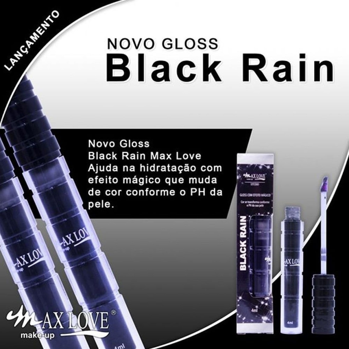 Gloss com efeito mágico. No frasco parece de uma cor, mas ao aplicar nos lábios sua cor muda revelando uma tonalidade diferente, variando entre mais clara ou mais escura dependendo do PH da pele que foi aplicado. Fórmula hidratante para uso diário