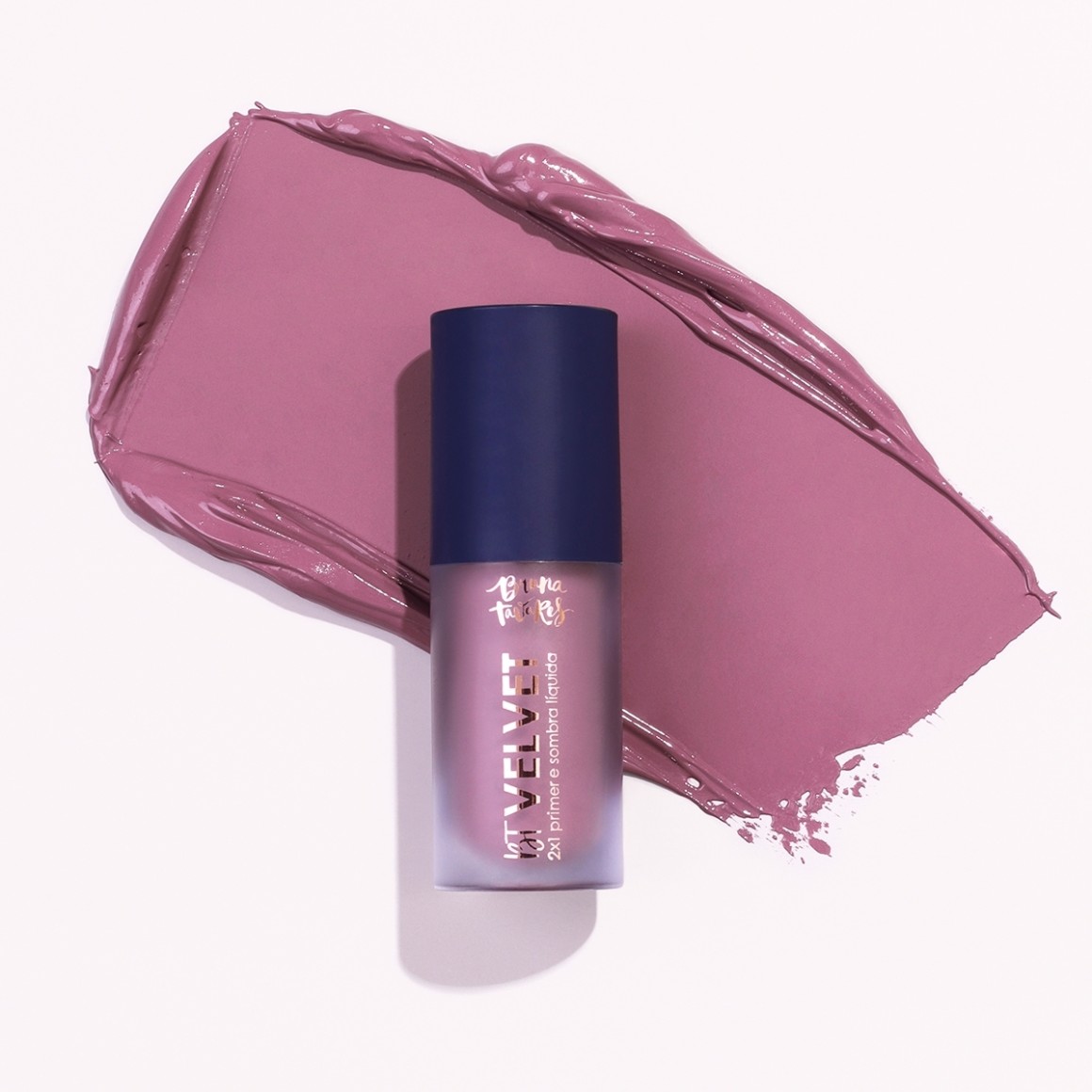 Bruna Tavares possui em sua linha o BT Velvet, que é 2 em 1: primer e sombra líquida aveludada. São cores incrivelmente pigmentadas que você pode usar como quiser. Possui textura cremosa e confortável, longa duração, é resistente à água e tem tamanho compacto, para levar juntinho de você todos os dias.