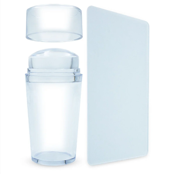 Características Técnicas Contém: 01 - Carimbo de Silicone para Unhas e 01 - Raspador Material: Plástico e Silicone Tamanho Aproximado: Carimbo: 6,5 x 3 x 2,5 / Raspador: 8,5 x 5,5 Cor: Transparente *Não acompanha placa com desenhos.