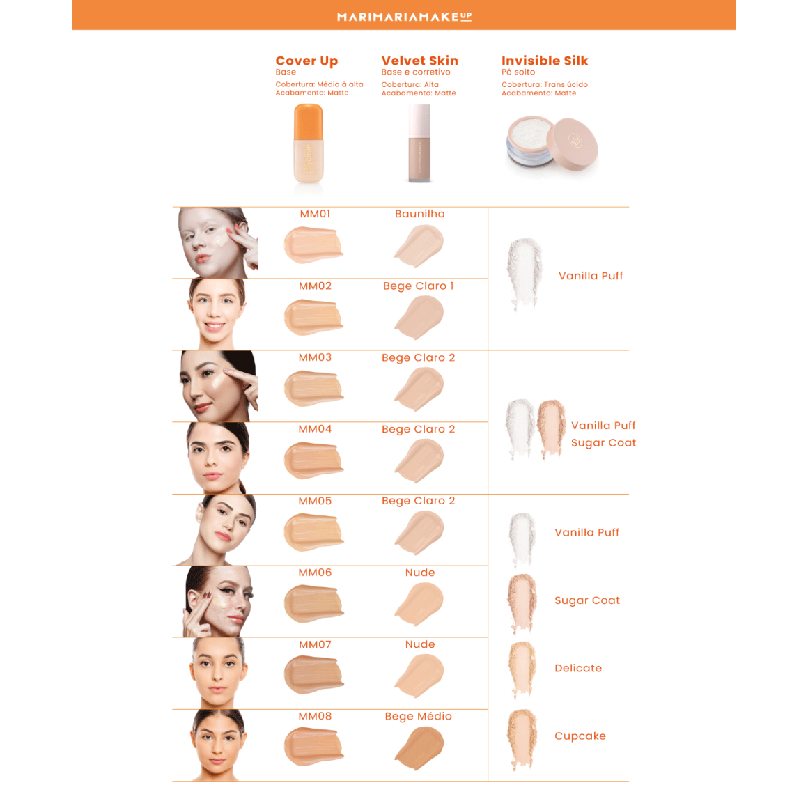A nova Base e Corretivo Velvet Skin combina um acabamento aveludado e proporciona cobertura média à alta, possui longa duração e ajuda a minimizar as imperfeições.