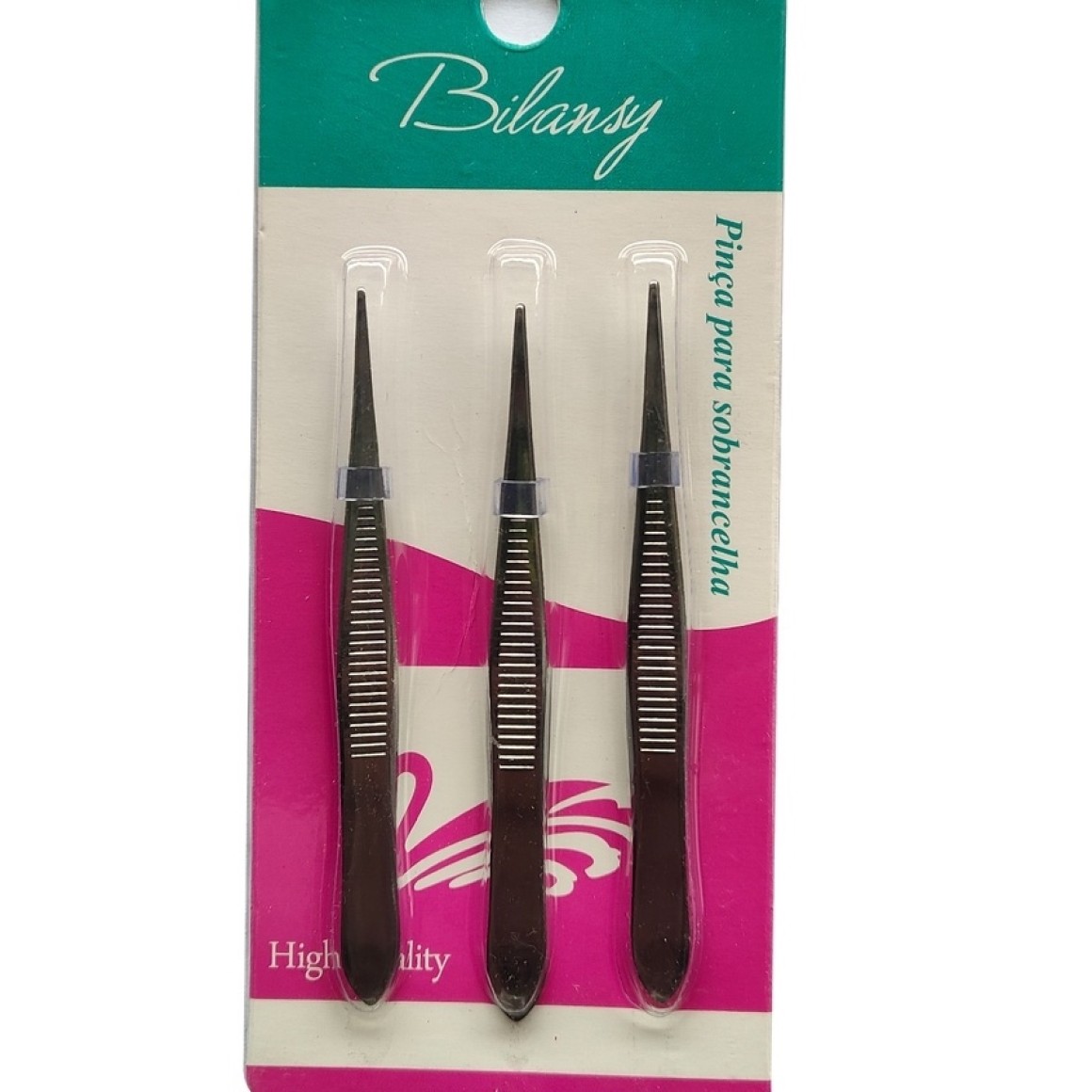 Kit com 3 Pinças de aço com excelente acabamento e resistência Ideal para o preparo de sobrancelhas e cilios, ourives, artesanatos e outros fins que desejam uma pegada com pontas finas. Pontas resistentes e lisas.