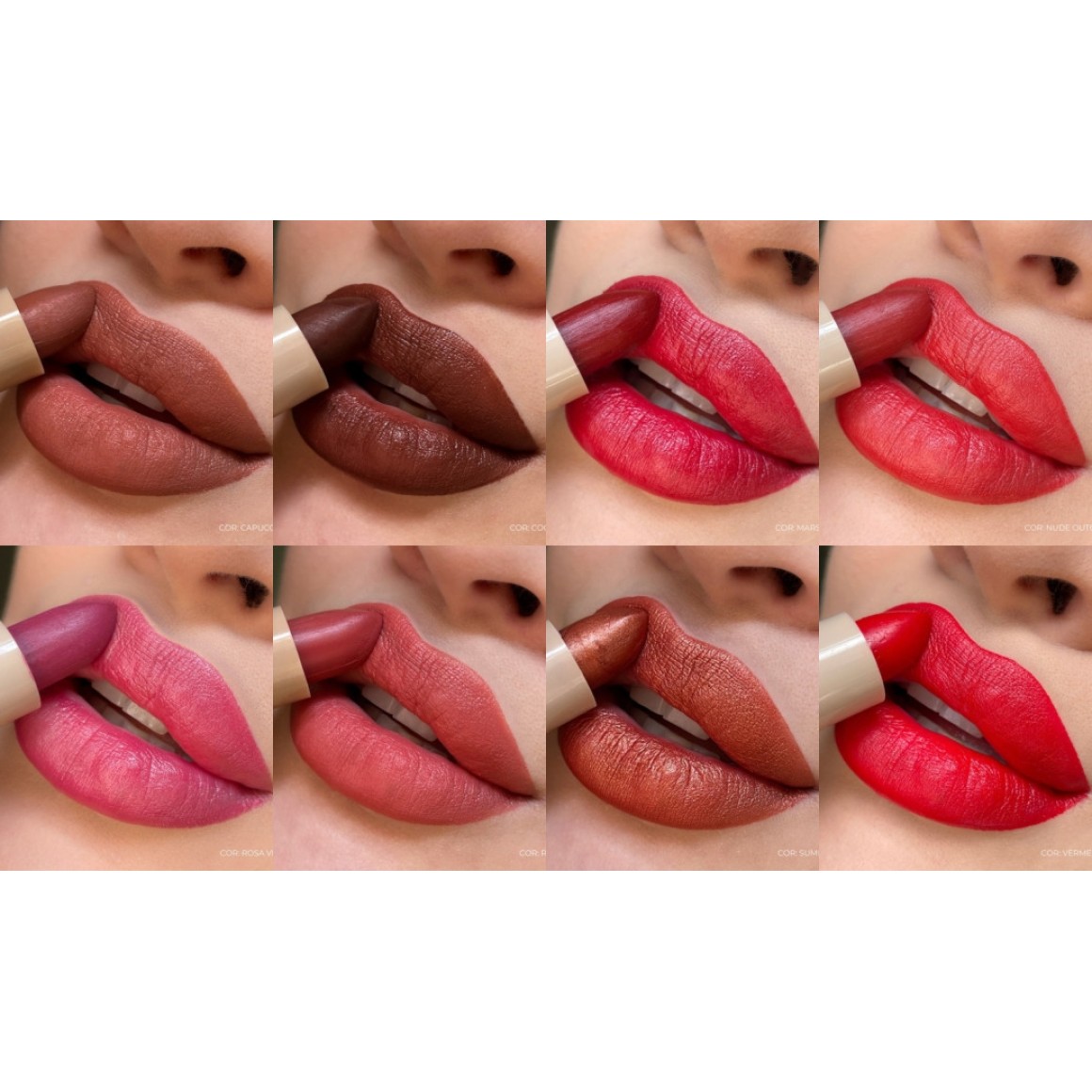 Cores: Capuccino, Cookie, Marsala, Nude Outono, Rosê, Summer, Rosa Vinte e Vermelho