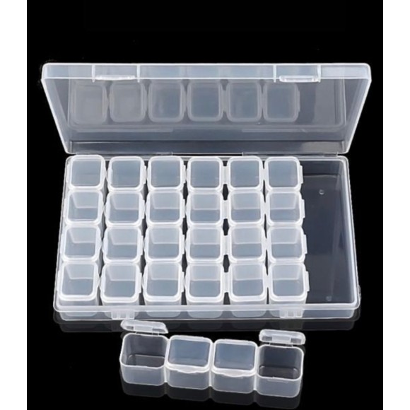 Características Técnicas Cores: Transparente Tamanho da caixa 17,0 x 10,5 cm Tamanho da fileira 10,0 x 2,0 cm Tamanha da divisoria unitária 2,0 x 2,5 cm Contém: 24 divisórias removíveis todas com tampa Material: Plástico