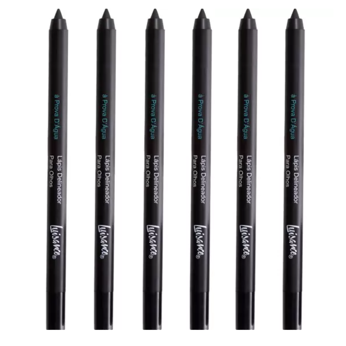 Kit 6 Lápis Delineador p/ Olhos 365 á prova D'água Preto Luisance