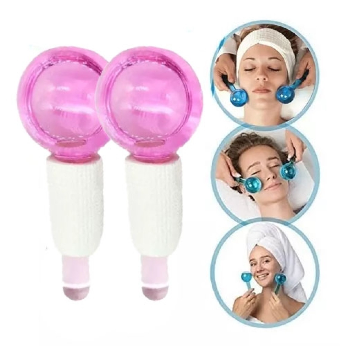 Os massageadores ice Globes estimulam a circulação sanguínea e a oxigenação da pele. Ajuda a desinchar e tonicar a pele, devido a estímulo de nervo e músculos facias.