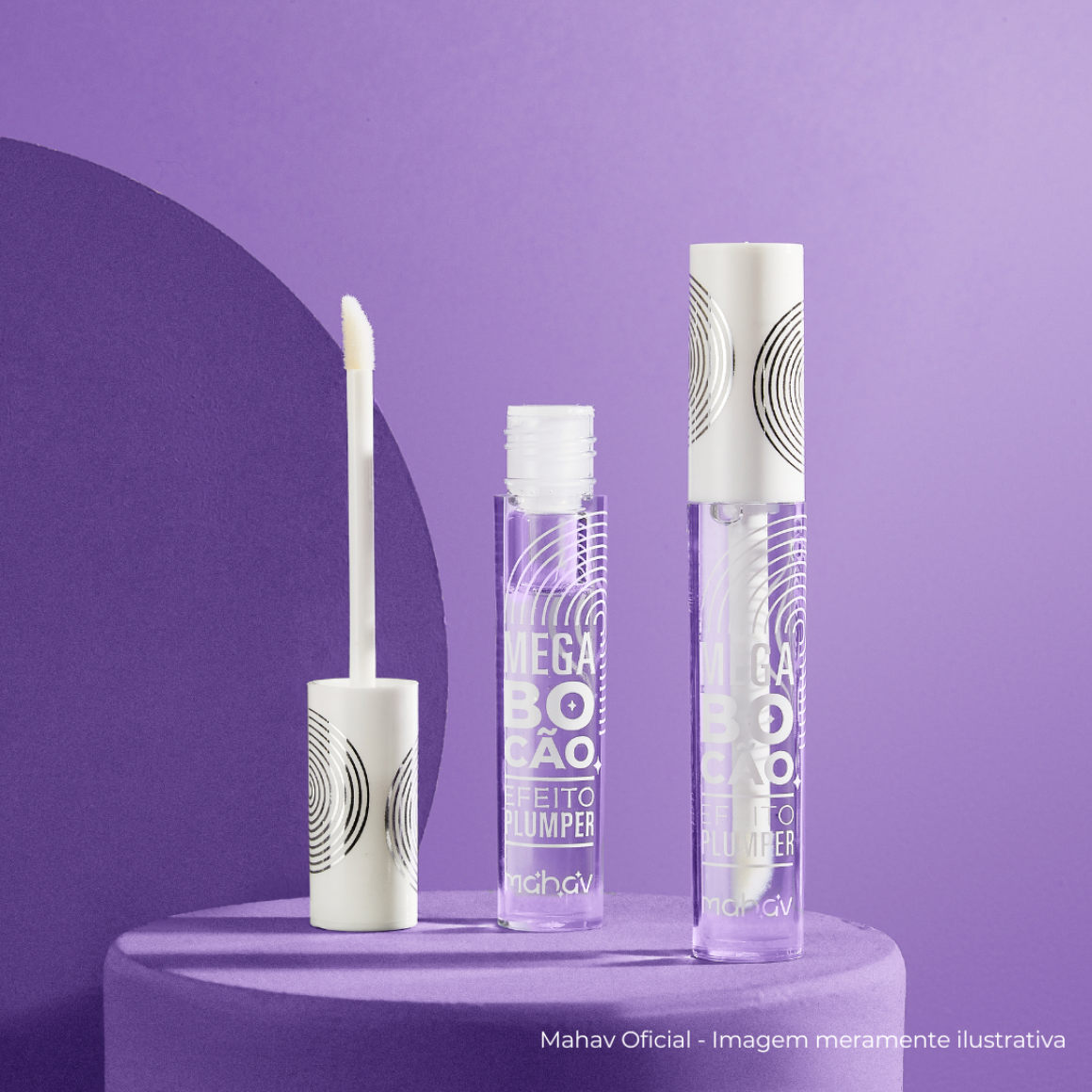 O Gloss Labial Mega Bocão, é um gloss que nutre, hidrata e intensifica o volume dos lábios. O efeito de volume pode ser observado após 5 minutos da aplicação pois contém ácido hialurônico que auxilia no aumento do volume dos lábios. Por ser translúcido, pode ser usado diretamente nos lábios ou sobre o batom e pode ser usado diariamente.
