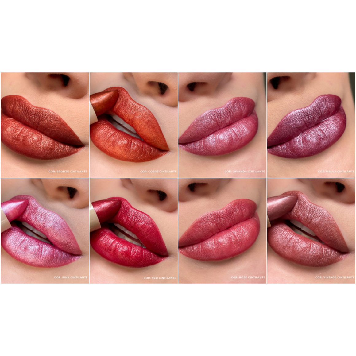 Cores: Bronze Shine, Cobre Shine, Lavanda Shine, Malva Shine, Pink Shine, Red Shine, Rosê Shine e Vintage Shine