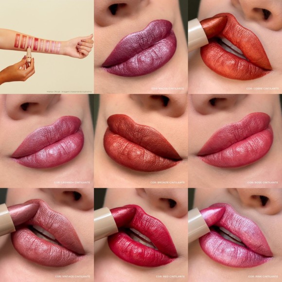 Cores: Bronze Shine, Cobre Shine, Lavanda Shine, Malva Shine, Pink Shine, Red Shine, Rosê Shine e Vintage Shine