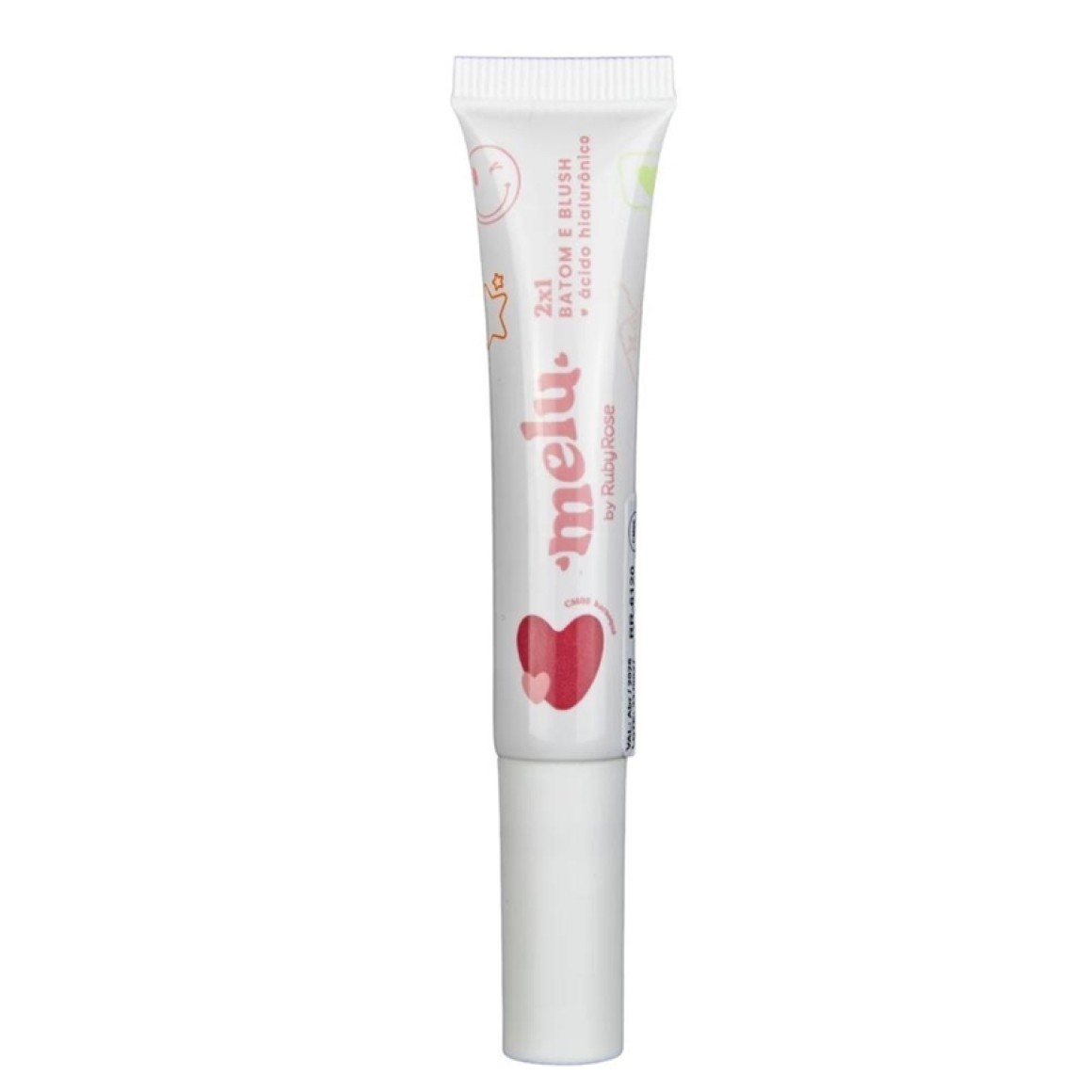 Chegou o melhor produto multifuncional que você vai se apaixonar! A bisnaga que te oferece pigmentação, hidratação, aplicação perfeita e com 12 cores modernas e divertidas! O 2x1 Batom e Blush da MELU! Contendo Ácido Hialurônico, que garante hidratação e suavidade aos seus lábios e rosto.