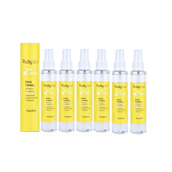 A água termal ON OFF possui poderosos ativos que auxiliam na hidratação da pele, promovendo sensação de frescor. Enriquecida com camomila, sais minerais, aloe vera, algas marinhas, Hamamelis e óleo de rícino proporciona efeito calmante e hidratante suavizando a pele.