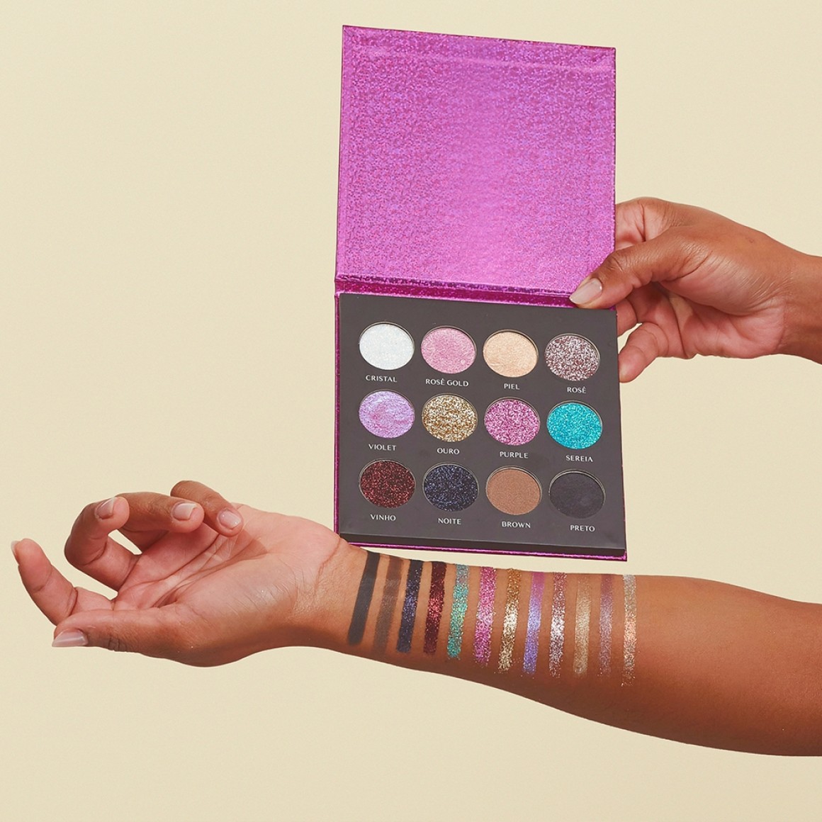 Contém: Box com 12 paletas sendo 12 Sombras de efeito com textura e acabamentos diferentes: glitter, mousse e cintilantes