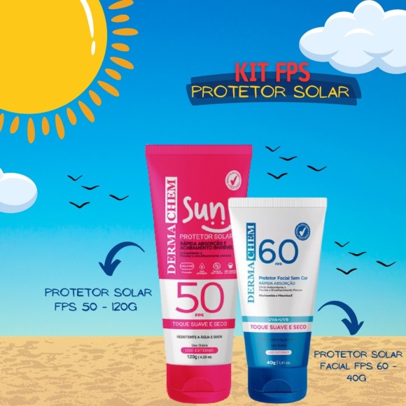O Kit contém Protetor Dermachem - Protetor Solar FPS 50 120g + Protetor Solar Facial FPS 60 40g
