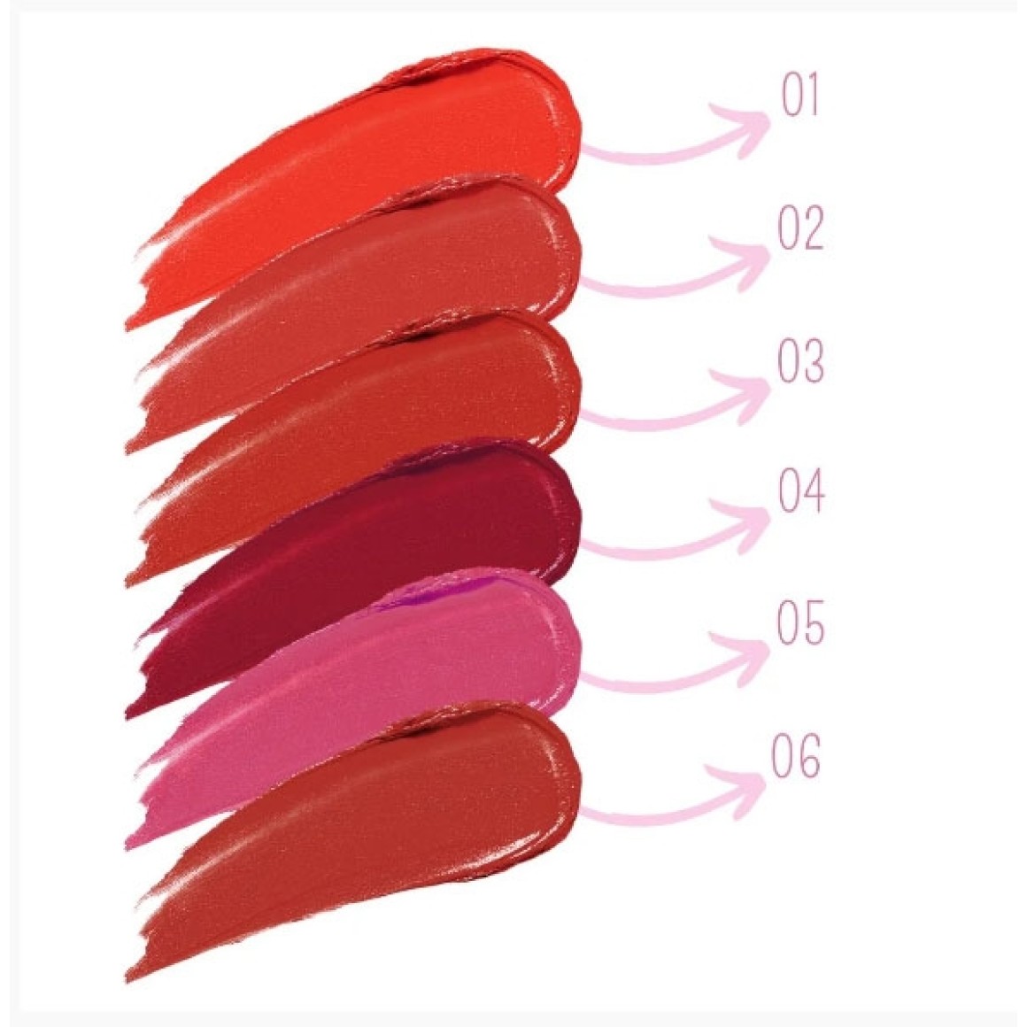 Cores: 01 pronta pra arrasar, 02 acordei bem básica, 03 avisa que eu cheguei, 04 bela e charmosa, 05 beleza da realeza, 06 hoje eu to madame