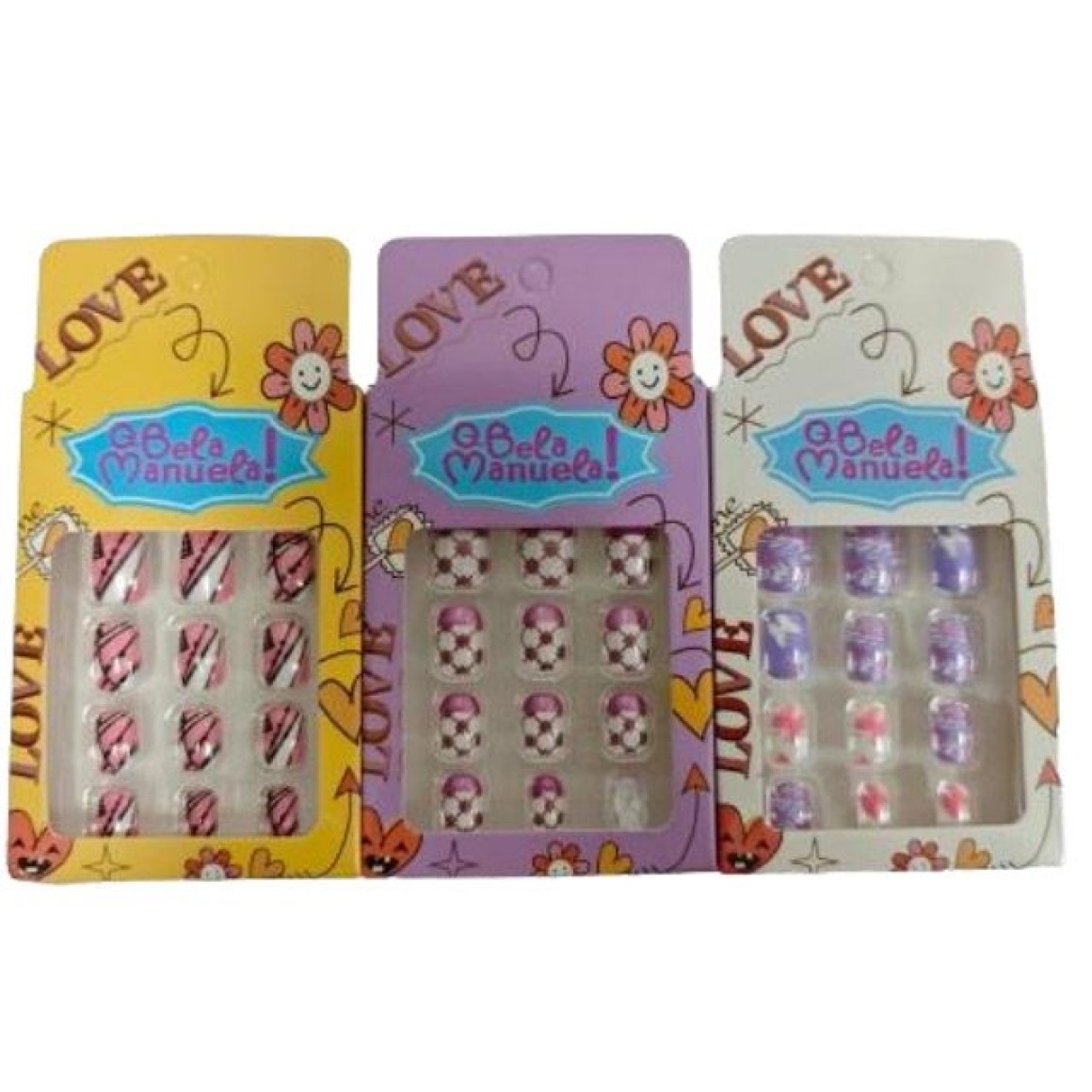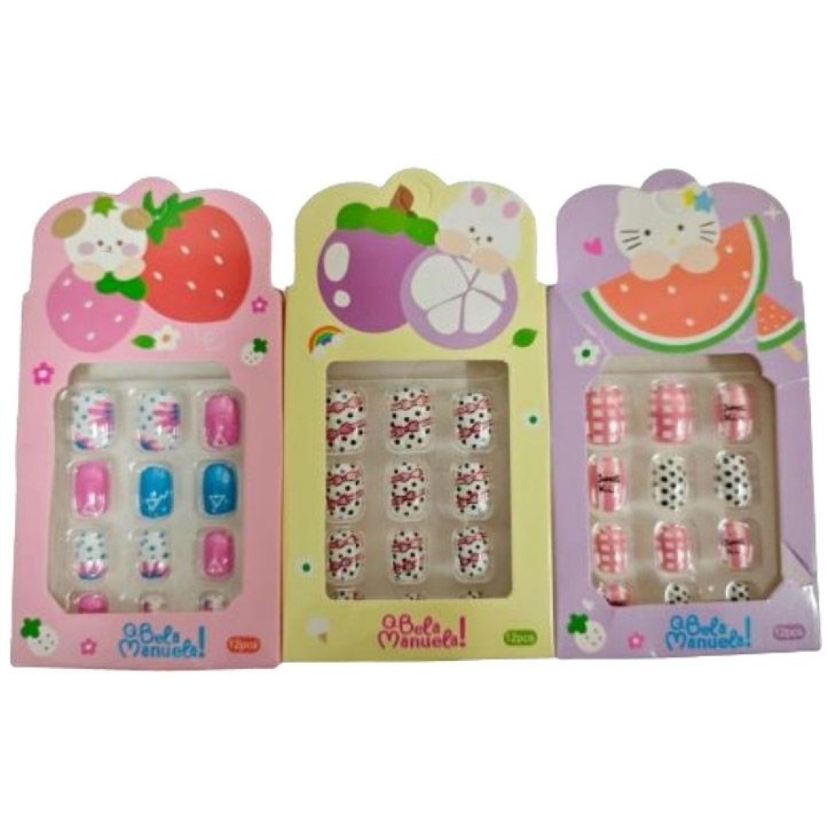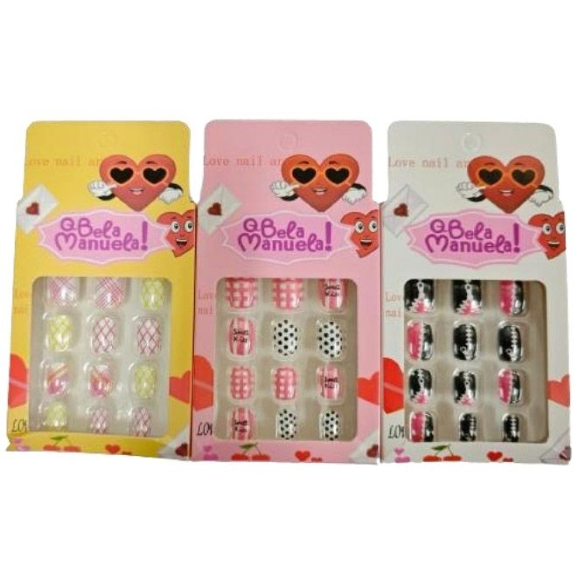 2. Kit Unhas Postiças Autocolantes Infantil c/ 12 Make Lolita