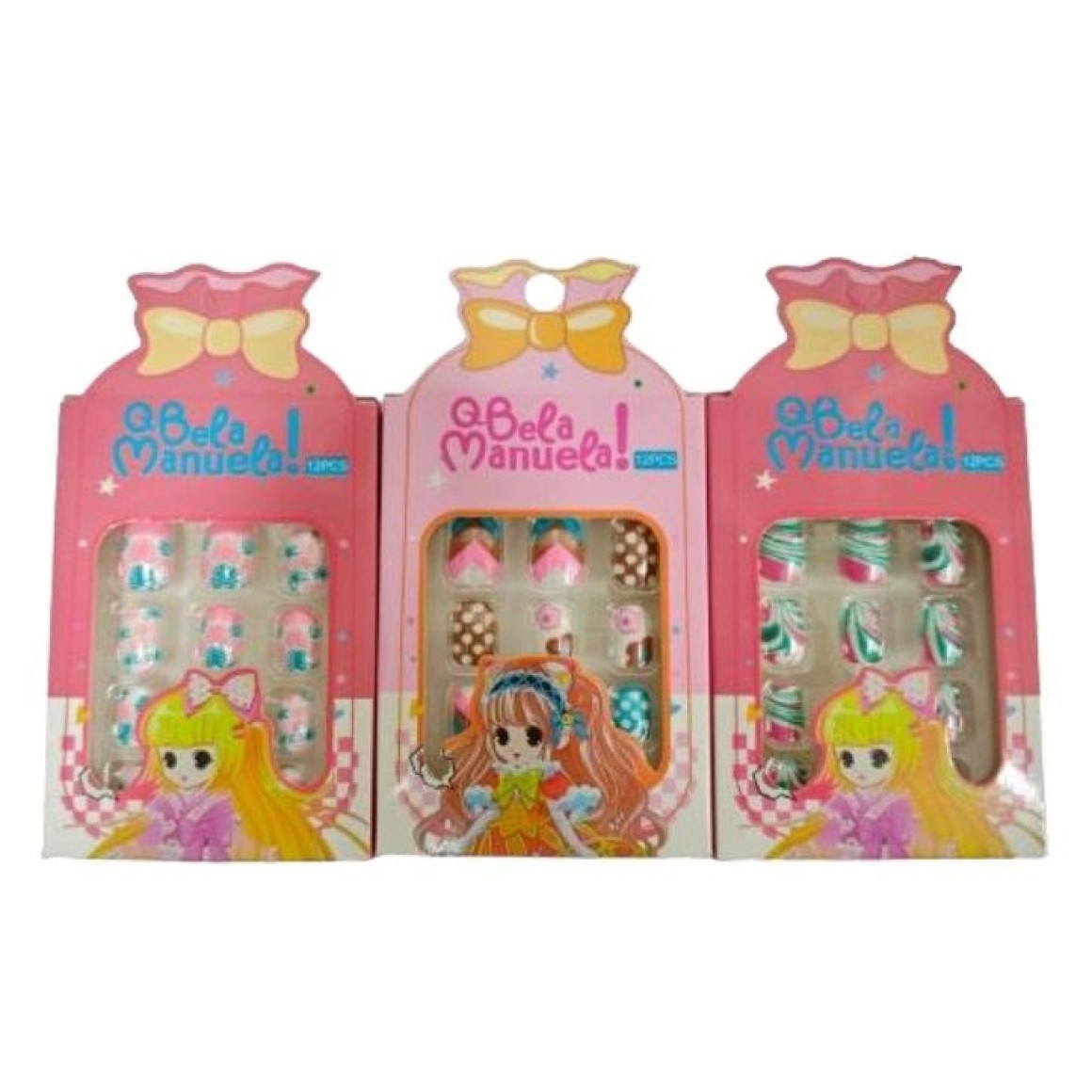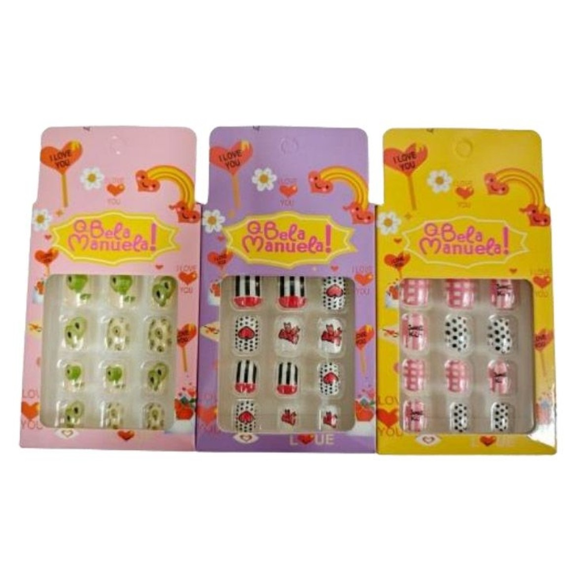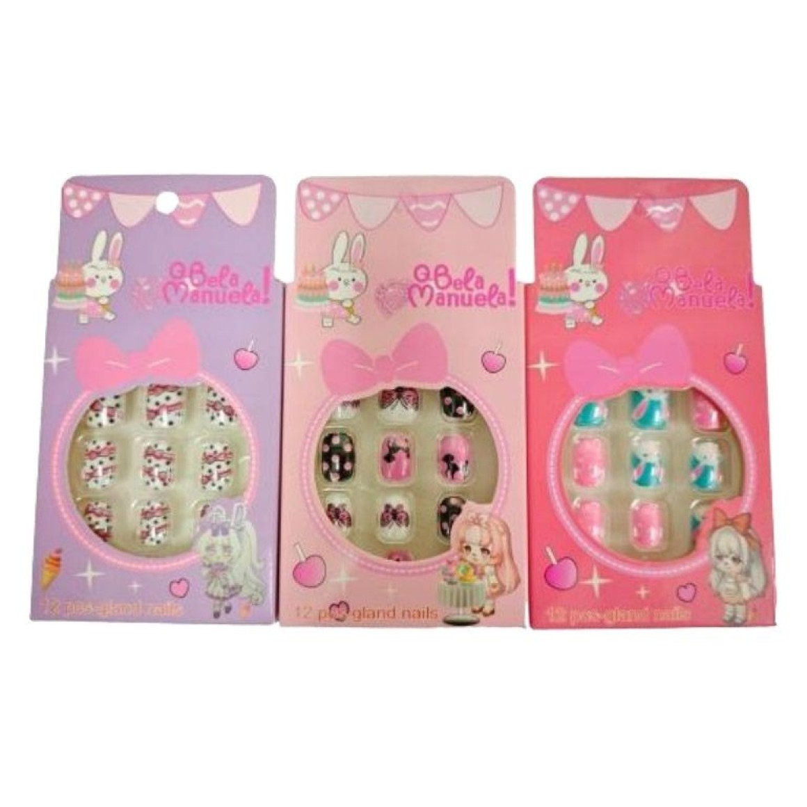 2. Kit Unhas Postiças Autocolantes Infantil c/ 12 Make Lolita