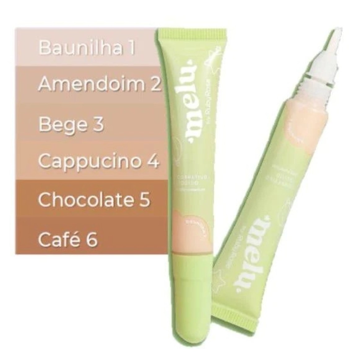 O Corretivo Líquido com Aplicador da Melu by Ruby Rose possui alta cobertura e cobre manchas e imperfeições, uniformizando a pele e mantendo o aspecto natural, sem craquelar. Sua fórmula é totalmente livre de parabenos, não deixa a pele oleosa e é super fácil de aplicar. Além disso, tem alta cobertura que permite preparar toda a pele com apenas uma camada. Tudo isso numa embalagem super fofa e fácil de aplicar.