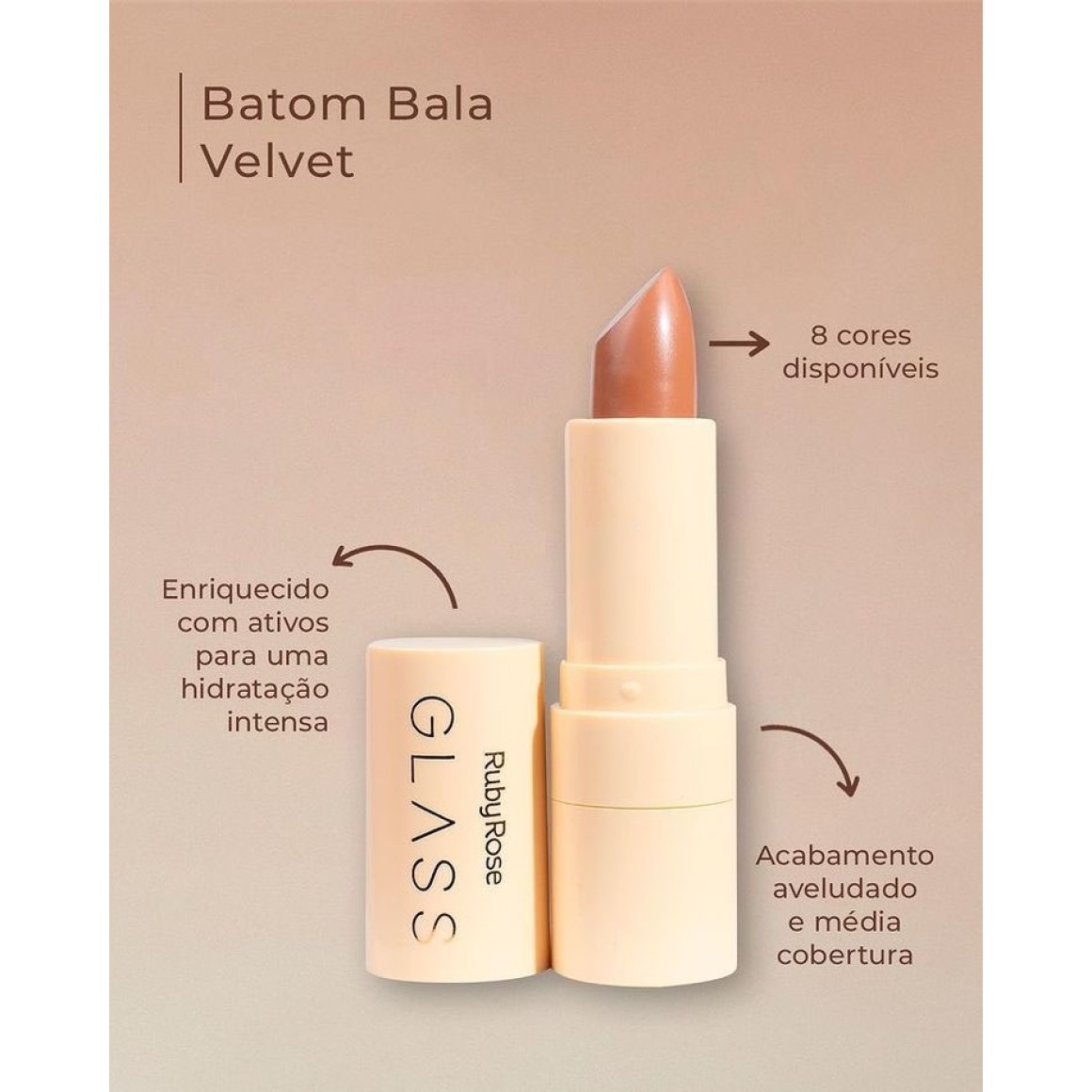 O Batom em Bala Velvet Glass da Ruby Rose é a combinação perfeita entre sofisticação e conforto para os lábios. Com uma textura suave e cremosa, este batom desliza facilmente, proporcionando uma aplicação uniforme e um acabamento luxuoso.