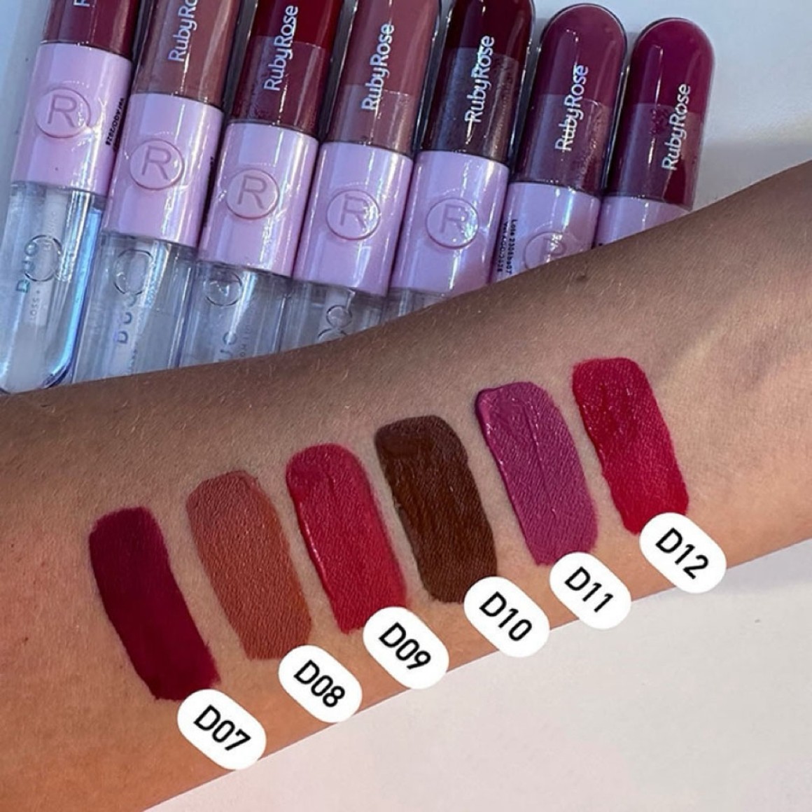 Kit 6 Batom Líquido + Gloss Duo Grupo 2 Ruby Rose