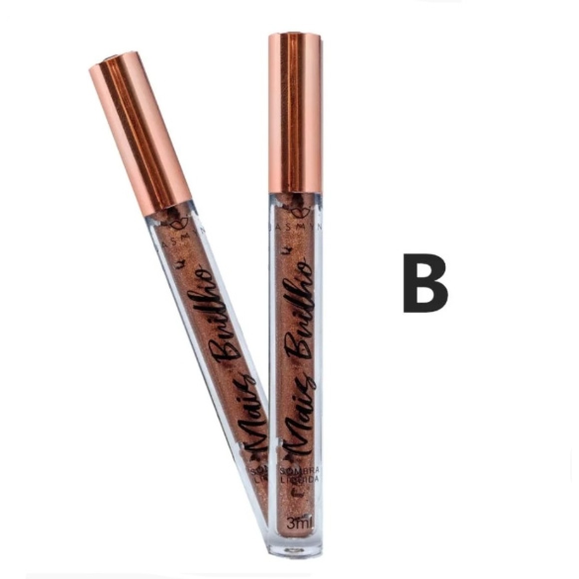 A Sombra Líquida Mais Brilho da Jasmyne te entrega brilho em um acabamento metálico incrível que dura o dia todo! Ela possui uma fórmula de alta pigmentação e cobertura, particulas de brilho, é fácil de aplicar, possui secagem rápida e longa duração. Ela é ideal para você que adora brilhos e procura uma sombra que resista ao dia inteiro, proporcionando makes cheias de vida e glamour!