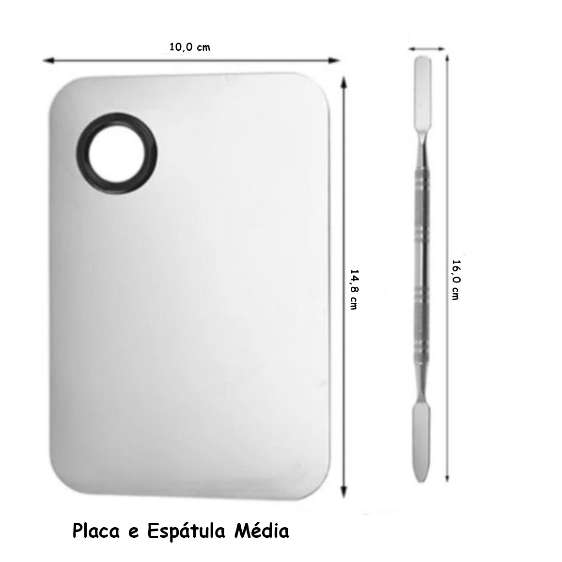 Tamanho Aproximado: Placa: 14,8 x 10,0 cm / Espátula: 15,8 cm