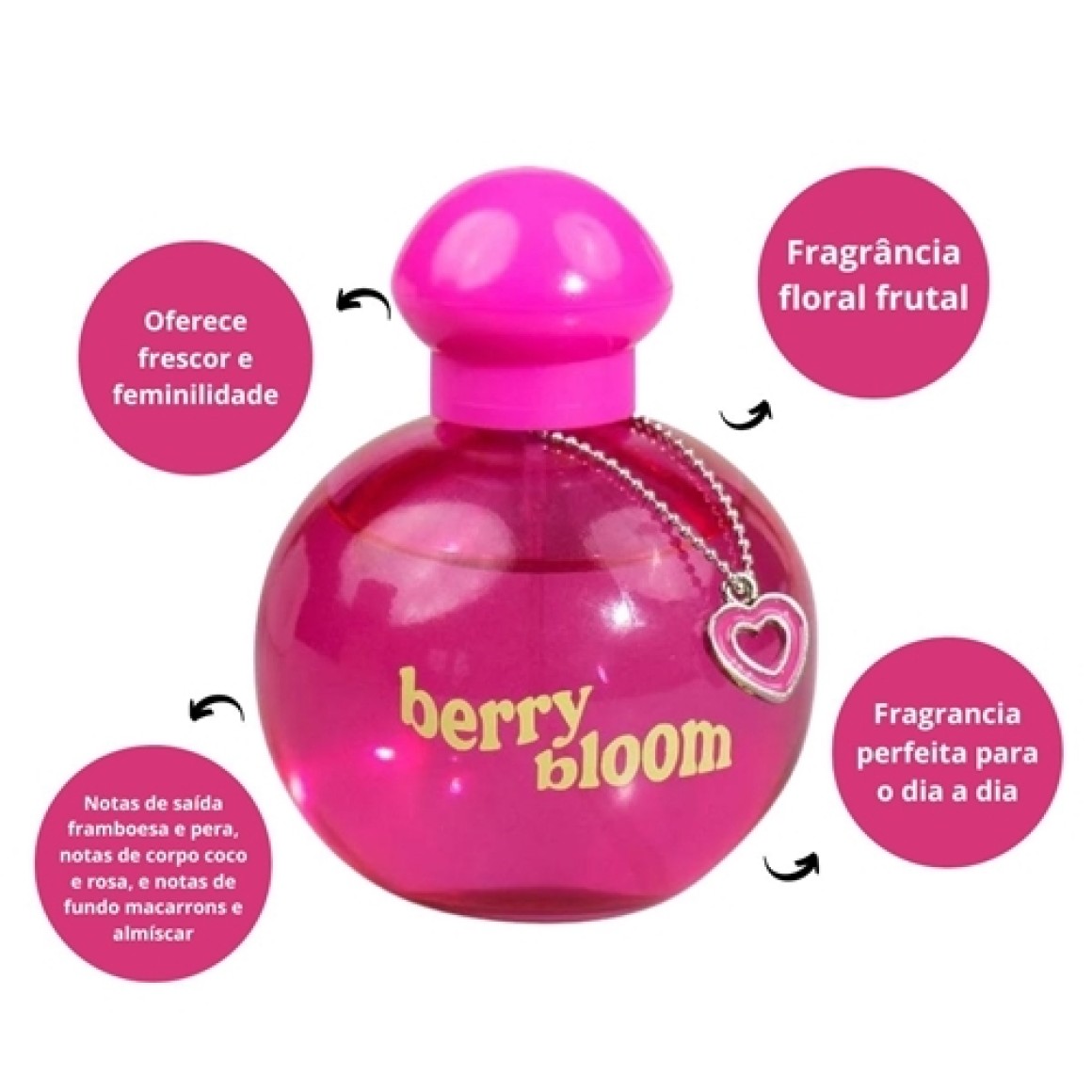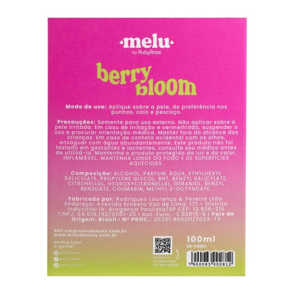 Colônia Berry Bloom Melu O Perfume Berry Bloom Melu é um floral frutal, perfeito para o dia a dia por ter uma energia contagiante. É uma fragrância envolvente, divertida, delicada e moderna.