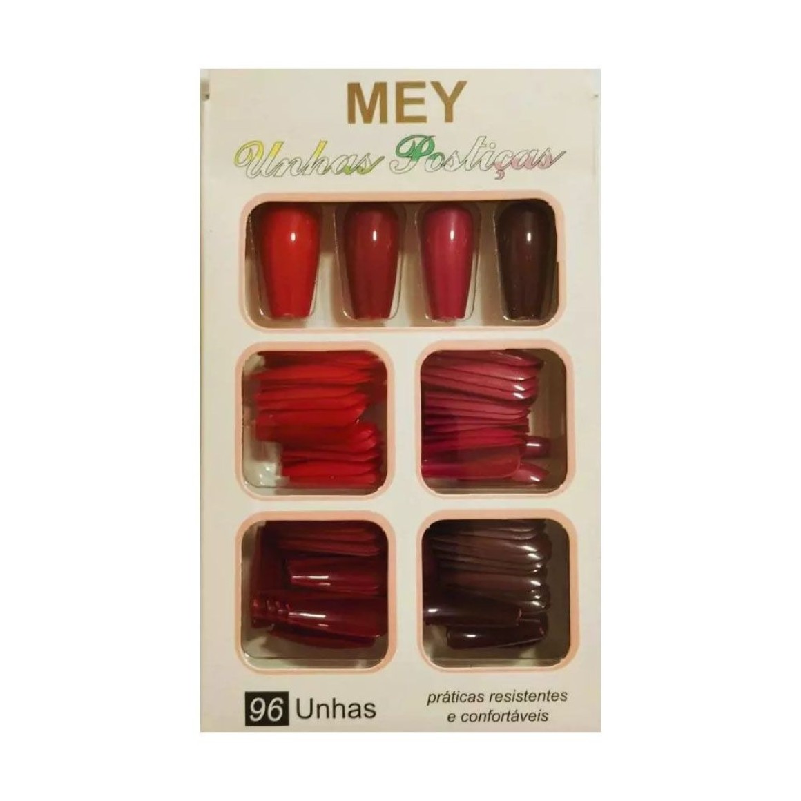 2. Unha Postiça Alongada Vermelha Mey c/ 96 Unidades