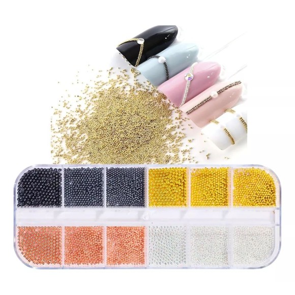 Estojo Com Strass Caviar Para Design De Unhas 4 Cores