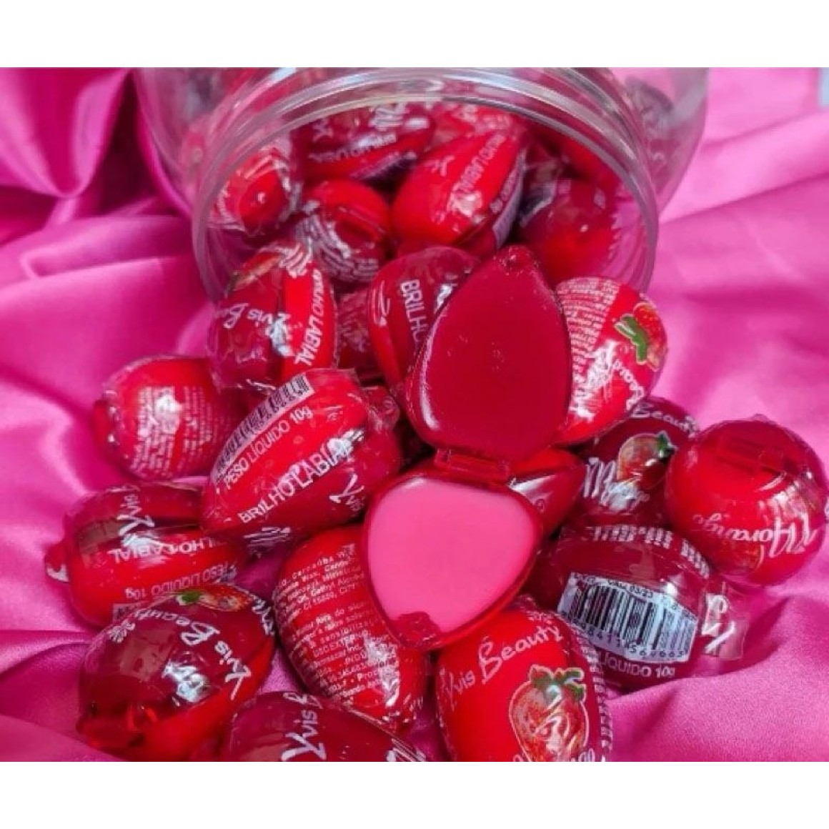 O clássico brilho em formato de frutinhas é famoso pelo seu sabor e aroma de morango e pela sua ação de hidratação e brilho. Sucesso nos anos 80.