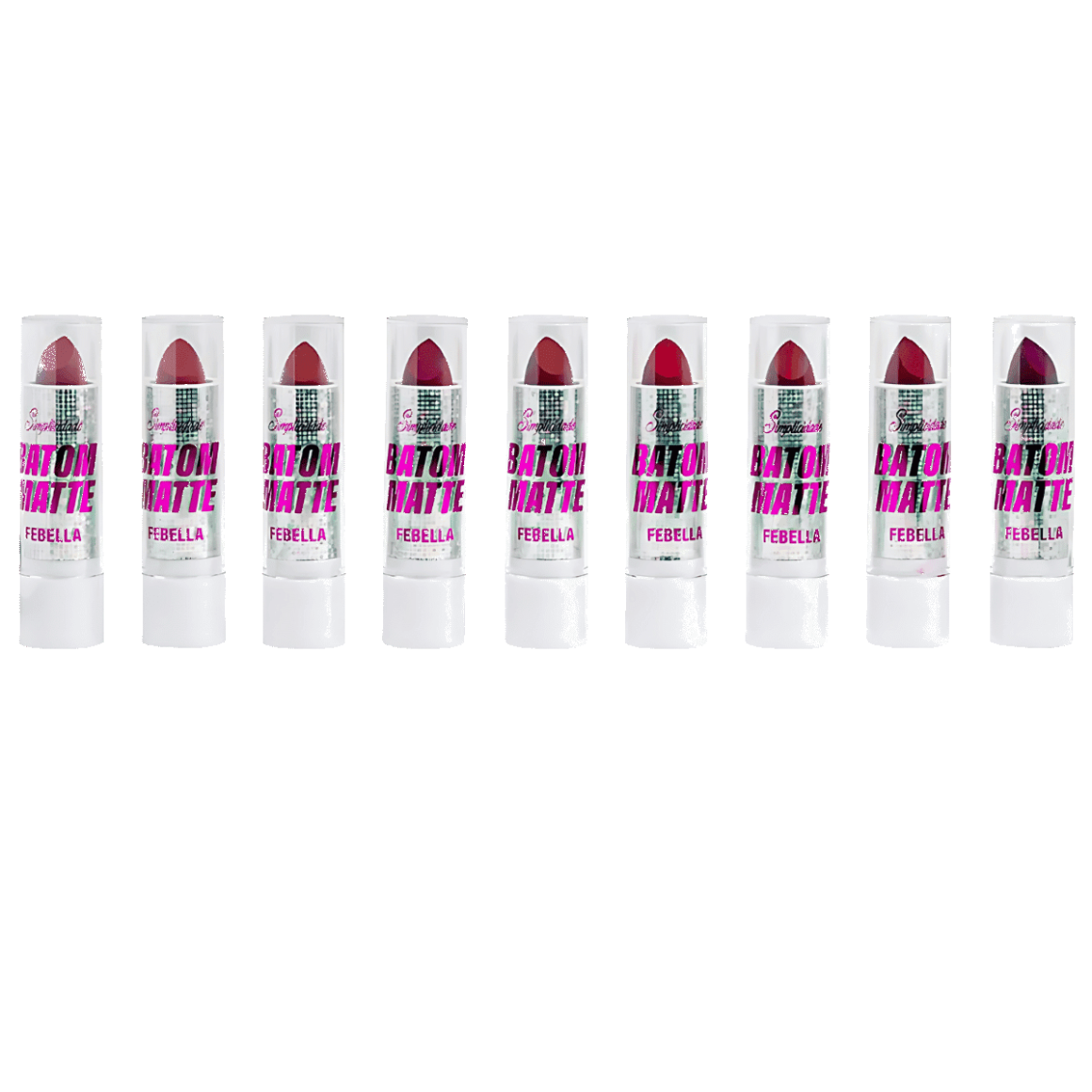 O Batom Matte Simplicidade da Febella possui acabamento matte com cobertura uniforme e uma ótima fixação.