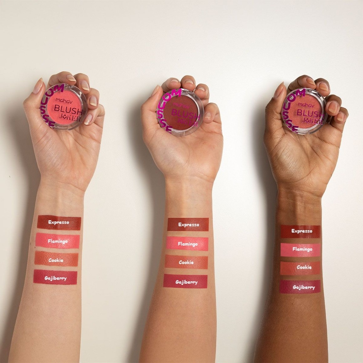 O Blush Soft Mousse Joker Mahav foi desenvolvido com tecnologia avançada para oferecer uma textura mousse e ultraleve. A aplicação se funde de maneira uniforme aos demais produtos e contribui para uma maquiagem natural, permitindo também intensificar a cor com novas aplicações e camadas. A multifuncionalidade permite que seja usado como blush, sombra e batom. Embalagem pocket com design moderno e transparente, que permite a visualização da cor.