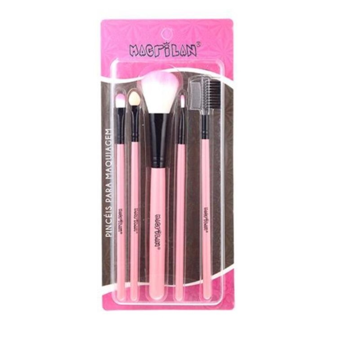 O Kit com 5 pincéis de maquiagem da Macrilan, foi desenvolvido com cerdas macias e arredondadas e é ótimo para ser levado na necessaire pois atende perfeitamente a necessidade de uma maquiagem básica do dia-a-dia.