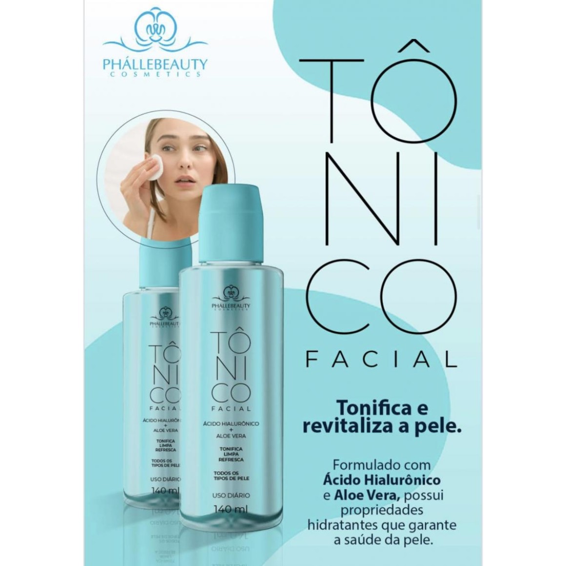 O Tônico Facial da Phalle Beauty foi especialmente desenvolvido para promover refrescância e limpeza no rosto e na região do pescoço, deixando a pele tonificada e revitalizada. formulado com Ácido Hialurônico e Aloe Vera, possui propriedades hidratantes que garante a saúde da pele.- Ácido Hialurônico e Aloe Vera.