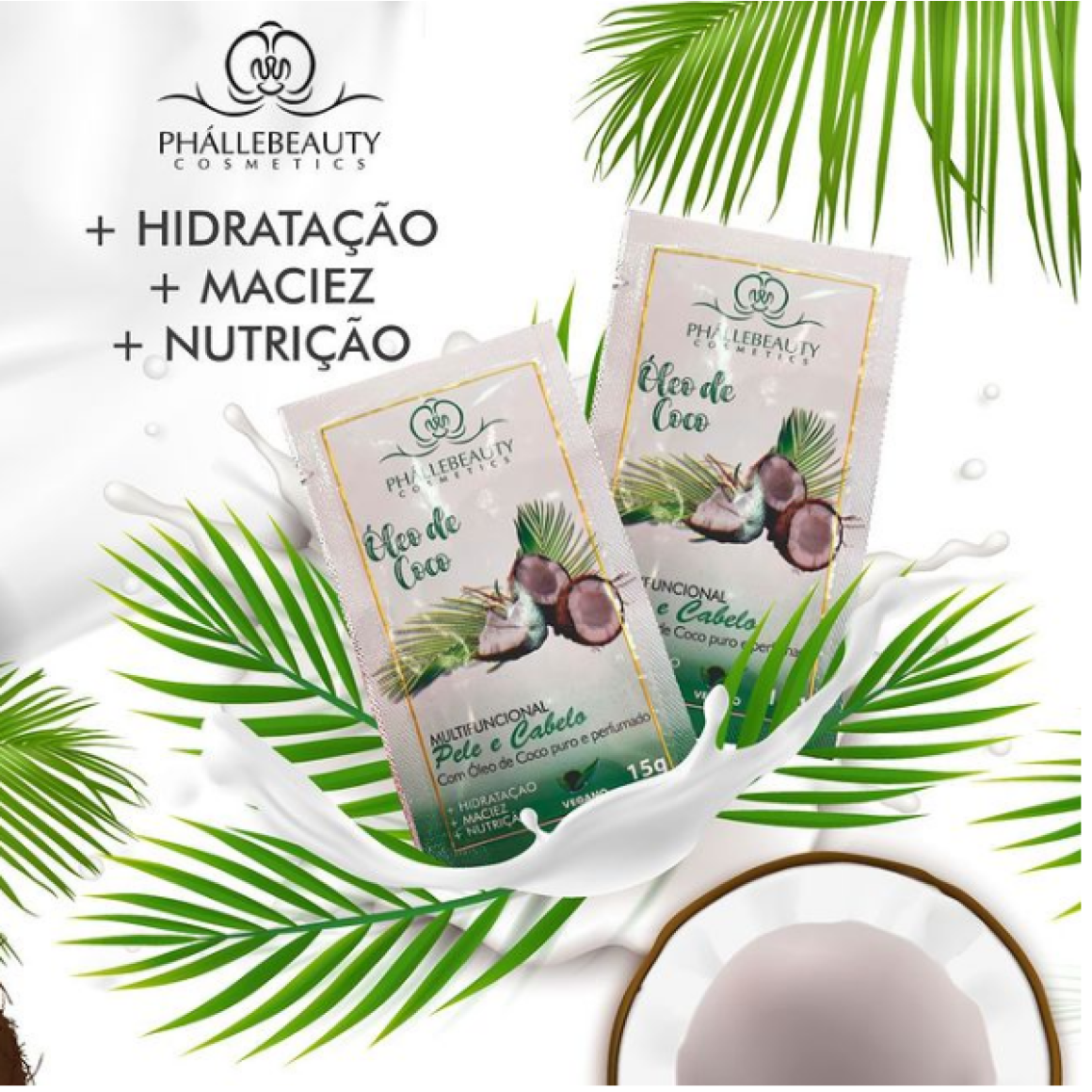 O Óleo de Coco Phállebeauty foi desenvolvido com uma fórmula concentrada em nutrientes que proporcionam alto poder de hidratação, maciez e nutrição, tanto para a pele quanto para os cabelos. Para os cabelos funciona como agente mega umectante para os fios, já na pele ele atua prevenindo o ressecamento.