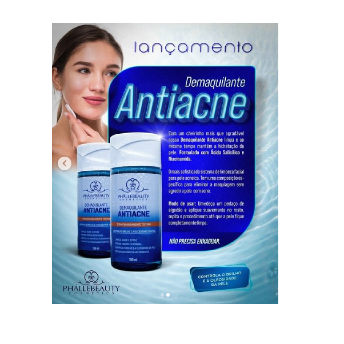 Benefícios Livre de óleos e gorduras Possui agentes de limpeza suaves Não agride a pele Contem extratos vegetais equilibrantes Formulado com ácido salicílico e niacinamida.