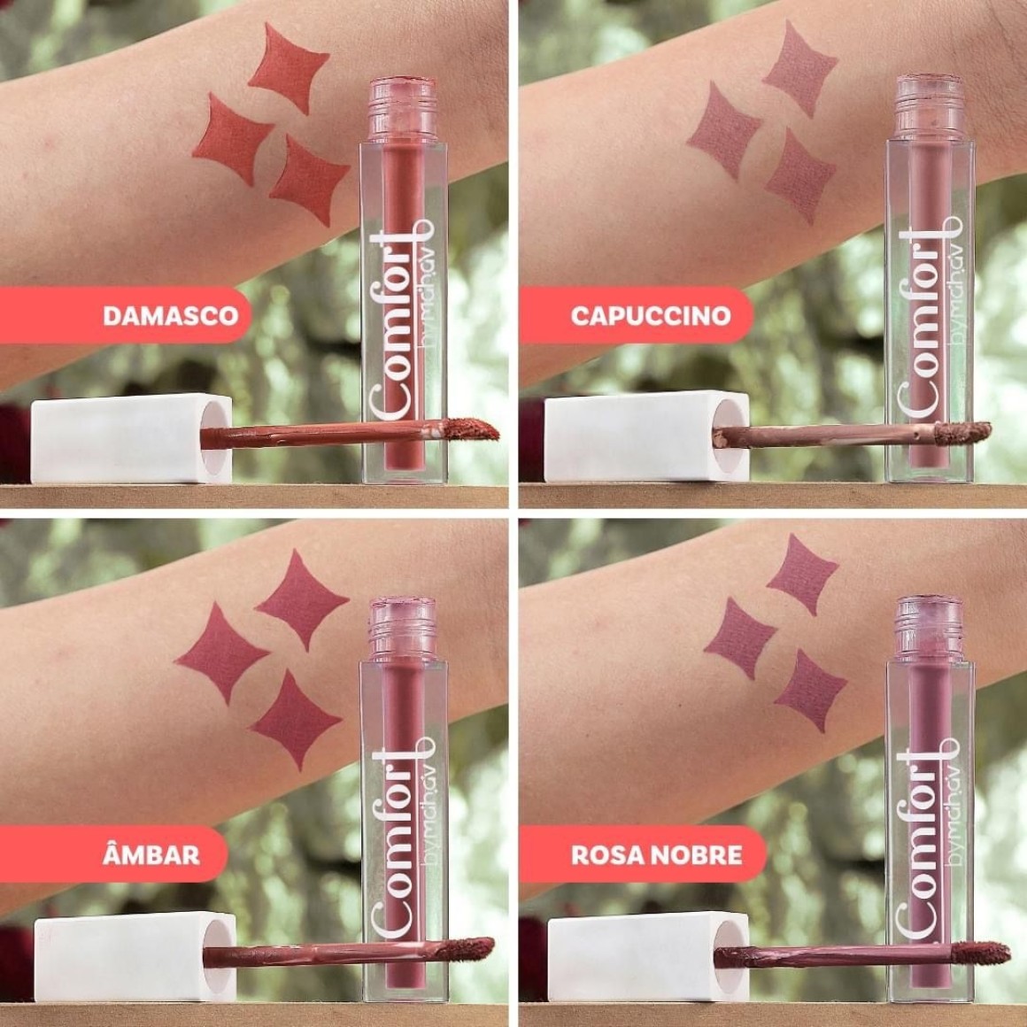 Agora com nova embalagem o Batom Comfort Mahav é formulado com ingredientes emolientes e condicionantes que conferem à mucosa labial muito conforto. Desenvolvido para lábios mais secos e maduros, não transfere, alta pigmentação, cobertura uniforme e boa durabilidade, fixação e espalhabilidade.