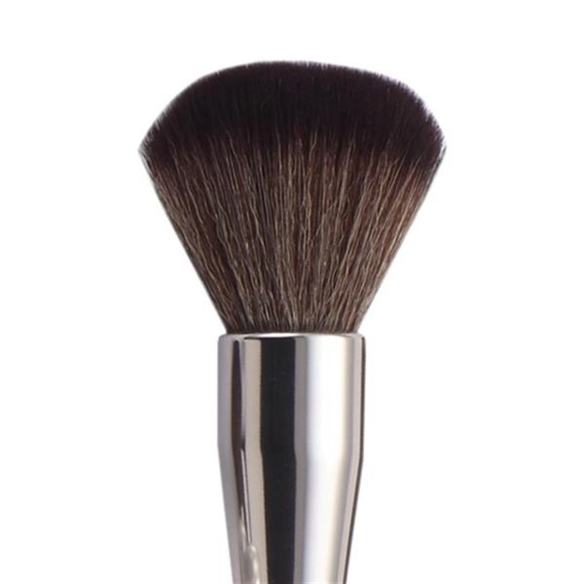 Pincel para pó mineral, pó facial compacto, solto ou iluminador pela face e corpo. Com cerdas arredondadas e macias, este pincel permite uma aplicação suave e garante maquiagem uniforme.