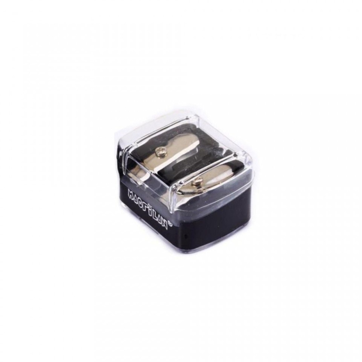 Apontador Macrilan AP-01 com duplo orifício para apontar todos os tamanhos de lápis para olhos, lápis sombra e lápis labial.