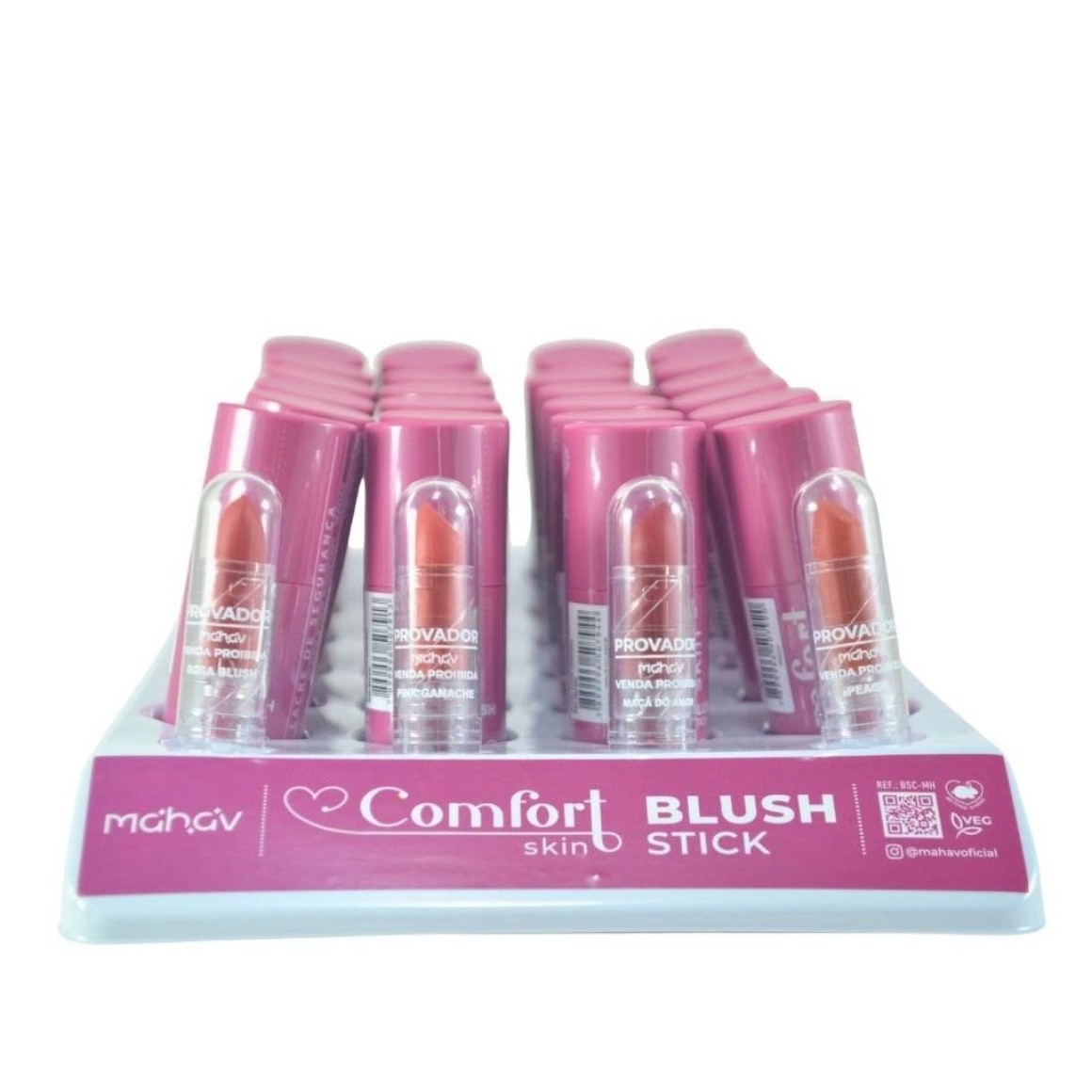 O Blush Stick Comfort Skin Mahav possui uma textura cremosa e suave. A forma em bastão é prática e permite uma aplicação rápida e fácil, tanto com os dedos quanto com um pincel. Sua alta pigmentação proporciona um acabamento natural ou mais intenso, podendo ser construído camadas.