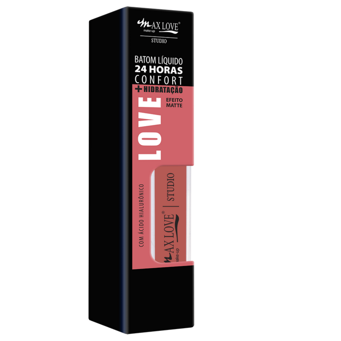 O Batom Líquido 24 Horas Confort + Hidratação Max Love, combina a fixação e acabamento matte do batom líquido 24 horas, com a hidratação e o conforto de um batom cremoso em um único produto. Sua fórmula com Ácido Hialurônico, hidrata os lábios e sua textura permanece levemente maleável após a secagem, para acompanhar o movimento da pele dos lábios, evitando craquelamento.