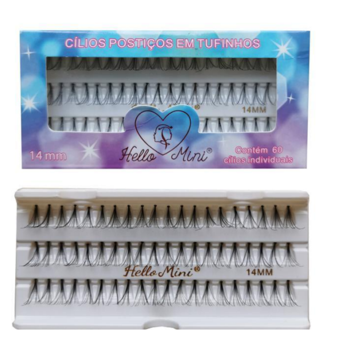 Cílios Postiços em Tufinhos 14 mm Hello Mini Os cílios em tufinhos da Hello Mini podem ser aplicados em toda a extensão da pálpebra ou somente na parte externa para realçar o olhar. Ideal para preencher e consertar falhas e também para dar volume aos cílios naturais.