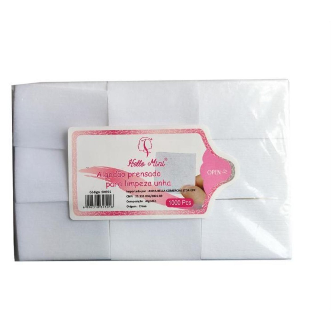 Características Técnicas Referência: SN955 Contém: Pacote com 1000 unidades Componentes: 100% algodão. Tamanho aproximado: 4,0 x 6,0