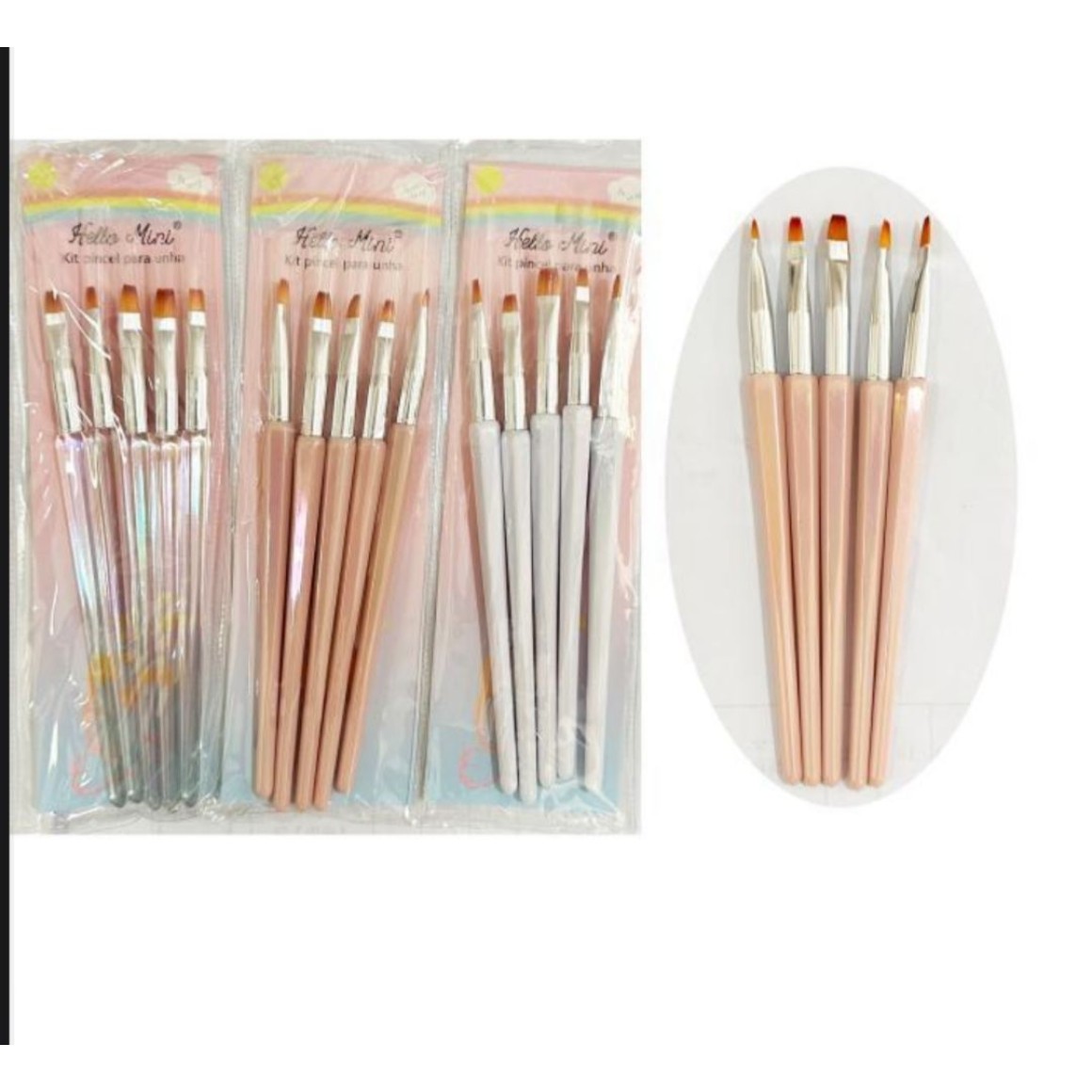 Kit 5 Pincel Reto Hello Mini para Unhas Artísticas KIT1162-1